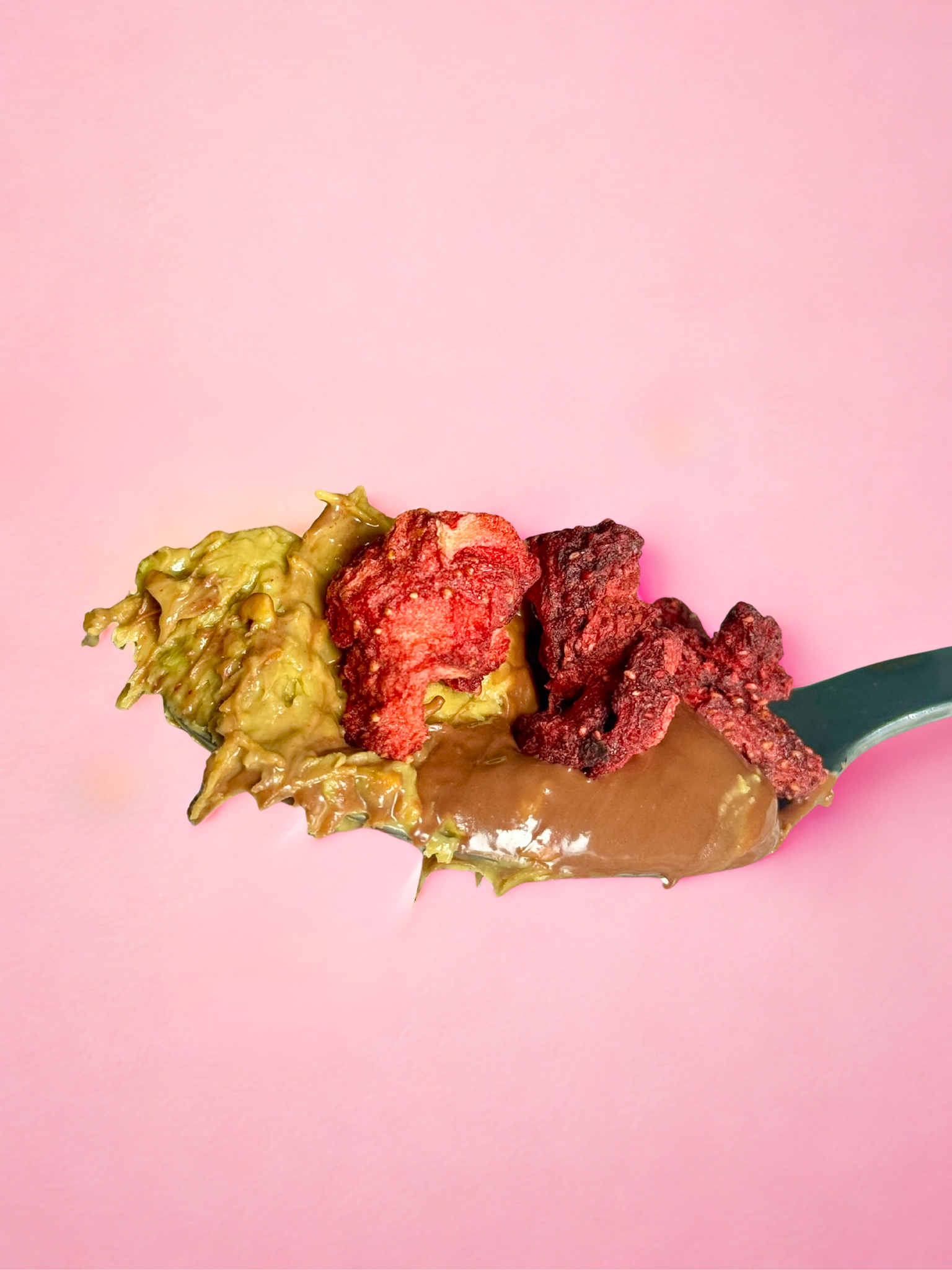 Take your taste buds on a luxury trip with Strawtella: Dubai Dip — a dreamy, ultra-creamy, ultra-crunchy spread that’s part dessert, part obsession. We blended rich hazelnut cream with pieces of real, crunchy strawberries to create a flavor that’s sweet, nutty, and irresistibly addictive.